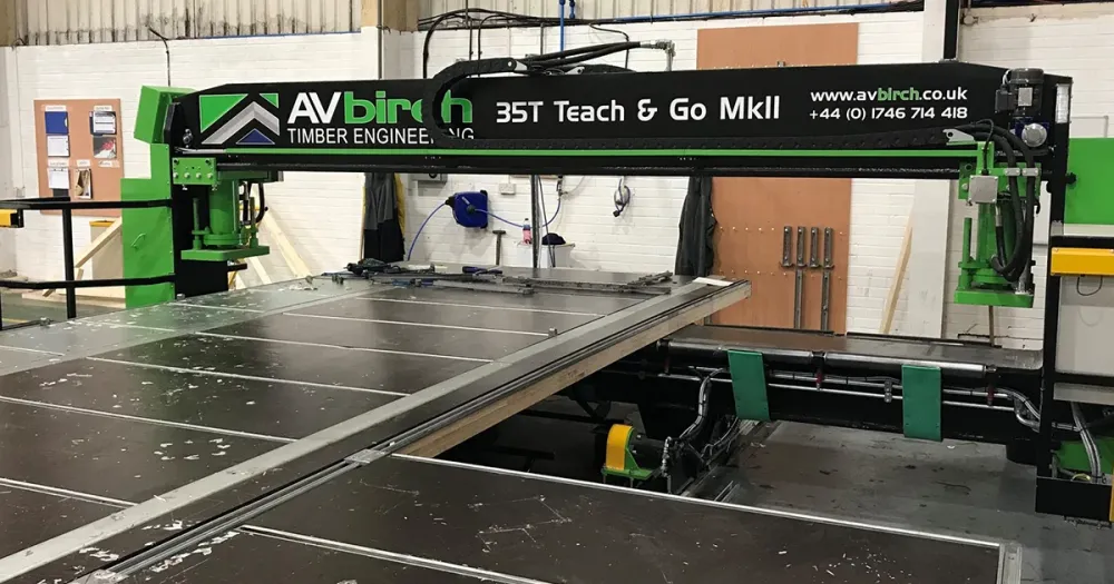 Home/Inżynieria drewna/Maszyny do wiązarów i legarów/Roof Truss Presses/Opcjonalny zautomatyzowany system Teach and Go Pressing