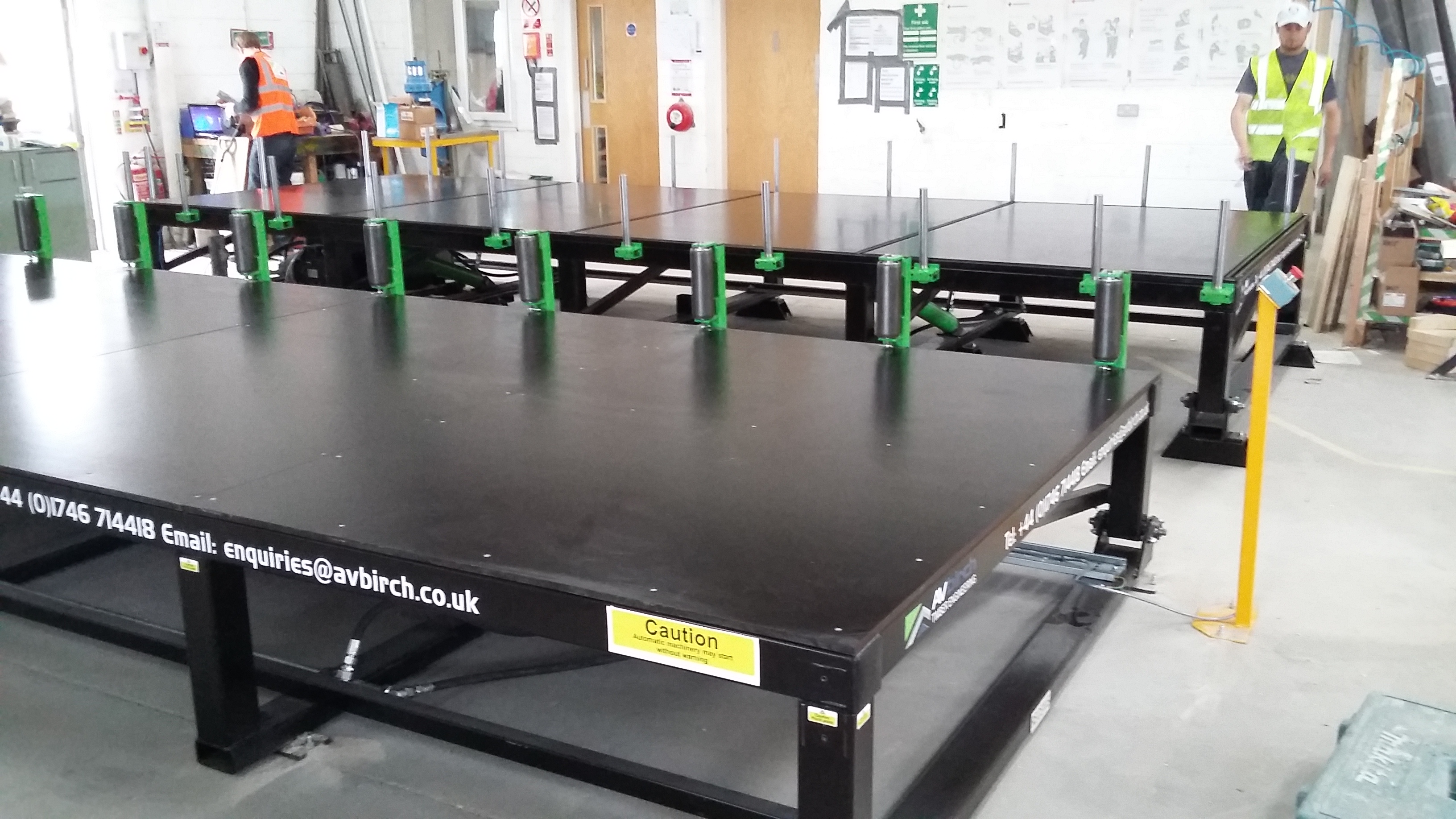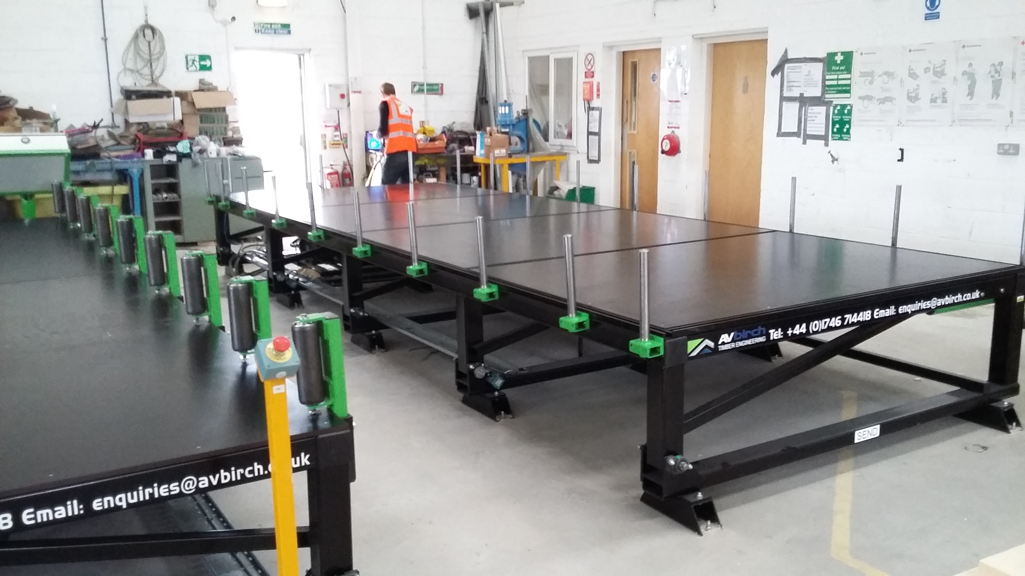Rolkowy system podawania umożliwia następnie wydajne i bezpieczne przetoczenie panelu ze stołu Panel Master PM-1 na wózek, eliminując potrzebę stosowania wózków widłowych lub dźwigów.